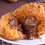 Spoon about a tablespoon of batter into the muffin cups, place a piece of your favorite chocolate on top, and cover with another spoonful of batter.