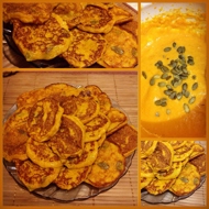 Beat the eggs and combine them with the pumpkin puree, mixing well.