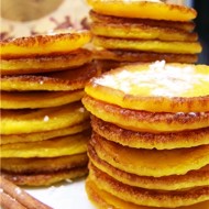 These delightful pancakes can also be enjoyed with soy sauce, garlic, fried onions, or bacon.