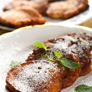 Serve the pancakes hot, drizzled with the sauce and sprinkled with powdered sugar.