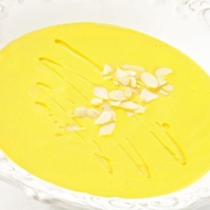 Blend the mixture until it reaches a smooth consistency. Add salt and pepper to taste. When serving, add a little cream. Serve with croutons. Garnish with almond slivers.