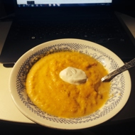 Serve this soup with herbs, sour cream, peeled dried pumpkin seeds, or cubes of blue cheese and croutons.