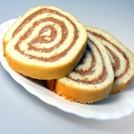 Spread chocolate spread over the cake and roll it tightly. Chill for about 1 hour and cut into pieces.