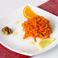 Mix the pumpkin with the juice and zest of the fruits, and the chopped walnuts.