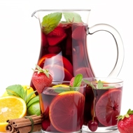 Place 100 grams of frozen cherries and 3 slices of canned pineapple in a punch bowl. Add half an orange cut into cubes, pour in 100 ml of white rum, and let it steep.