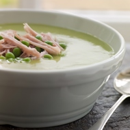 Soak the peas well, then cover with cold water and cook until soft. Strain through a sieve and combine with the broth. Add the chopped sausage and bring to a boil.