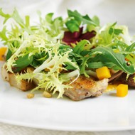 Combine the orange and lemon juice, then add 2 tablespoons of olive oil. Dress the salad mix with this sauce.