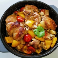 Place the quail fillet on the vegetable bed and pour the marinade over it. Do not mix.