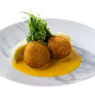 Quail Kiev Cutlets with Pumpkin Sauce and Mashed Potatoes