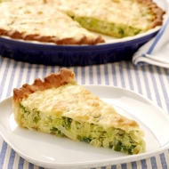 Roll out the pastry or simply spread it in a round tart pan with low sides (approximately 25 cm in diameter). Sprinkle with cheese and add the filling. Pour the milk mixture over it.
