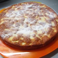 Grease the baking dish with butter, place the apples in it, and pour the batter on top. Bake until golden brown.