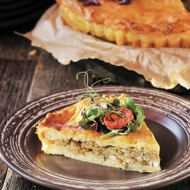 A classic poured pie: the dough is quickly mixed with sour cream and mayonnaise, and inside is stewed cabbage with sautéed onions and egg. Don’t worry if the dough seems too runny at first; it will rise and bake perfectly in the oven. The cabbage must be sautéed in butter — this makes it very tender while still having a slight crunch.