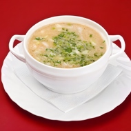 Bring the broth to a boil. While constantly stirring, gradually add the cheese and egg mixture. Cook, stirring, for 5 minutes. Add the vermicelli and cook until done.