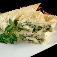 Cut the lavash into large squares, place the filling inside, fold it into an envelope shape, brush with egg, and bake in the oven for 5–10 minutes at a temperature of 180–392°F.