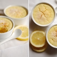 First, cream together the butter, sugar, and lemon zest. Next, add the lemon juice, egg yolk, flour, and milk (whipping after adding each of the ingredients).