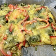 Grease a baking sheet with vegetable oil and pour in the quick kefir pizza dough, then place the baking sheet in the oven at about 392°F. Once the dough is golden brown, you can add the toppings and bake until fully cooked.