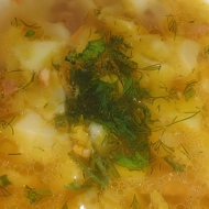 Chop the dill and parsley and add them to the soup after turning off the heat.