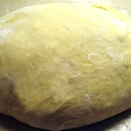 Then add the cold butter cut into small pieces and knead with your hands until the mixture resembles crumbs.