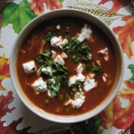 The soup turns out quite spicy and thick. Instead of green peas, you can add canned corn, which will change the flavor of the soup a bit...