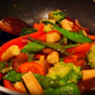In a well-heated wok pan with a small amount of olive oil, first add the zucchini and finely chopped chili pepper. Stirring frequently, sauté for no more than five minutes.