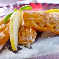 Grease a baking sheet with butter, sprinkle with flour, and place the sticks on it, making a slight cut along each with a knife. Insert a long slice of quince into the cut and bake at 302°F.