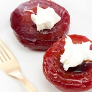 Preheat the oven to 392°F, place the quince halves cut side up on a baking sheet lined with foil, sprinkle sugar into each half, and drizzle with two tablespoons of wine. Wrap the fruits in foil and pour the water from the skins and seeds onto the baking sheet. Place in the oven for one to one and a half hours (the quince should become soft). Five minutes before it's done, unwrap the foil and brown the cut sides.
