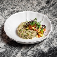 Recipe by John Smith, chef at a local American restaurant. This is a variation of the Middle Eastern salad tabbouleh — quinoa is mixed with finely chopped vegetables and herbs. However, this version also includes avocado, which adds heartiness to the light salad. The salad fits perfectly into the concept of healthy eating and is suitable for vegetarians.