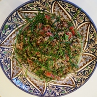 Mix everything in a salad bowl and dress with olive oil, tahini, and lemon juice.