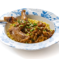 Serve the cooked rabbit with sauce and your favorite side dish, such as bulgur, pasta, couscous, or mashed potatoes.