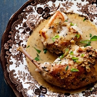 In a separate skillet, melt the butter, add the flour, and lightly sauté. Pour in the warm milk and add nutmeg. Stir until thickened, but do not overcook.