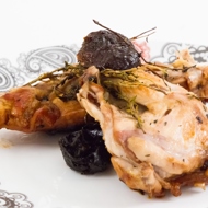 A warm and comforting dish: braised rabbit with prunes.
