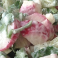 Mix all the ingredients and dress with sour cream. Add salt and pepper to taste.
