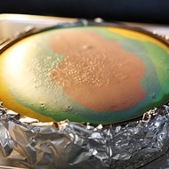 Pour the colored mixtures into the pan one at a time (pouring directly into the center).
