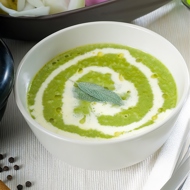 Transfer the soup to a blender and blend slightly, without making it completely smooth. Season with salt and pepper to taste. Warm it slightly, remove from heat, and add the remaining cream.