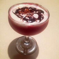 Use a spoon to draw 3 circles with the cocoa and decorate with a toothpick.