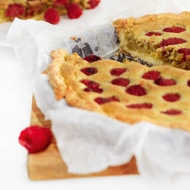 Press the raspberries into the frangipane and place the pie in the oven for half an hour (at the same temperature — 320°F).