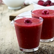 Place raspberries, sugar, and half of the sparkling water into a blender. Blend.