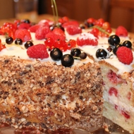 For the cream: whip the cream until it reaches a thick consistency, add the remaining sugar and the cheese. Mix everything well.