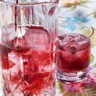 Pour in the raspberry gin, tonic water, and port wine. Stir well with a bar spoon.