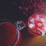 Blend the raspberries in a blender. Strain the raspberry mixture through a sieve to remove the seeds.