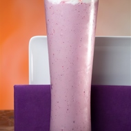 Pour the mixture into 2 tall glasses and top with raspberry sherbet. Garnish with the remaining berries on top.