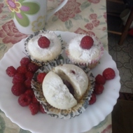 Next, add raspberries (about 10 berries, then the muffins will have a nice raspberry flavor).