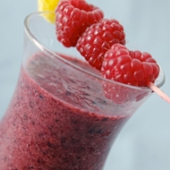 In a blender, combine 0.5 cup of water after soaking the dates, the dates, walnuts, and raspberries until smooth.