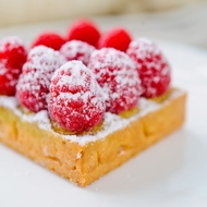 Decorate with fresh raspberries and sprinkle with powdered sugar.