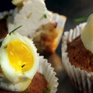 Make eight small quail egg yolks and let them cool while the ratatouille cupcakes are baking.