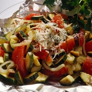 Heat the oil in a large deep skillet, add the meat, and cook over low heat, stirring, for 5 minutes, then remove with a slotted spoon and set aside. Add the onion and green pepper to the skillet, and after 10 minutes, add the zucchini and tomatoes. Stir, cover with a lid, and let it cook for 30 minutes over medium heat.