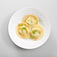 Cut out circles using a glass and seal the edges well. Leave the ravioli to dry for about an hour. Then, bring a pot of water to a boil, add a pinch of salt, and drop in the ravioli. Cook for three to four minutes.