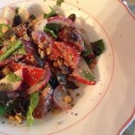Chop the tomatoes, radishes, and spinach, and mix them together.