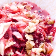 Red Cabbage Salad with Green Apple, Lingonberry Jam, and Toasted Walnuts
