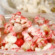 Add the butter to the popcorn and stir well to coat it completely in red.